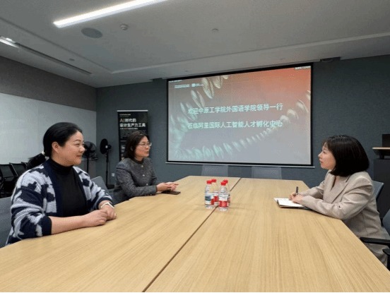 阿里国际人工智能人才孵化中心负责人范丹对我院一行的到访表示热烈欢迎,并详细介绍了阿里在国际电商平台运营、数字贸易生态构建以及全球化人才发展方面的战略布局与实践经验。她指出,语言服务和跨文化理解是国际交流及文化出海的关键环节,阿里非常需要外国语学院在语言与文化领域的专业支撑,双方可以在产业学院人才培养改革、AI外语课程体系共建、师资队伍培训、实习实训赋能学生职业发展等方面深度合作,携手实现共赢。