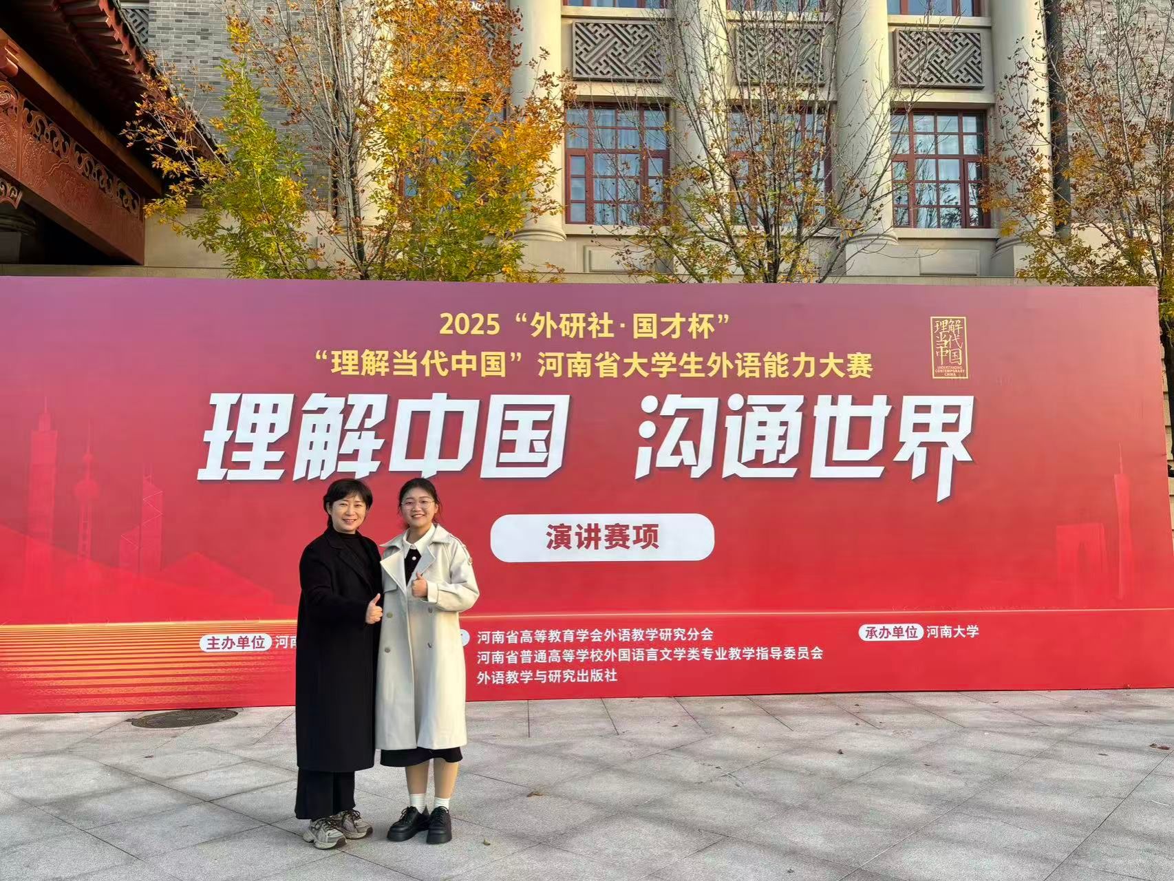 近日,备受瞩目的河南省教育厅主办的2025“外研社·国才杯”“理解当代中国”全国大学生外语能力大赛河南赛区演讲赛项在河南大学圆满落幕。我校选拔出的2位学子在激烈的角逐中从全省各高校的精英中脱颖而出,斩获河南赛区特等奖1项,晋级全国总决赛;荣获一等奖1项。