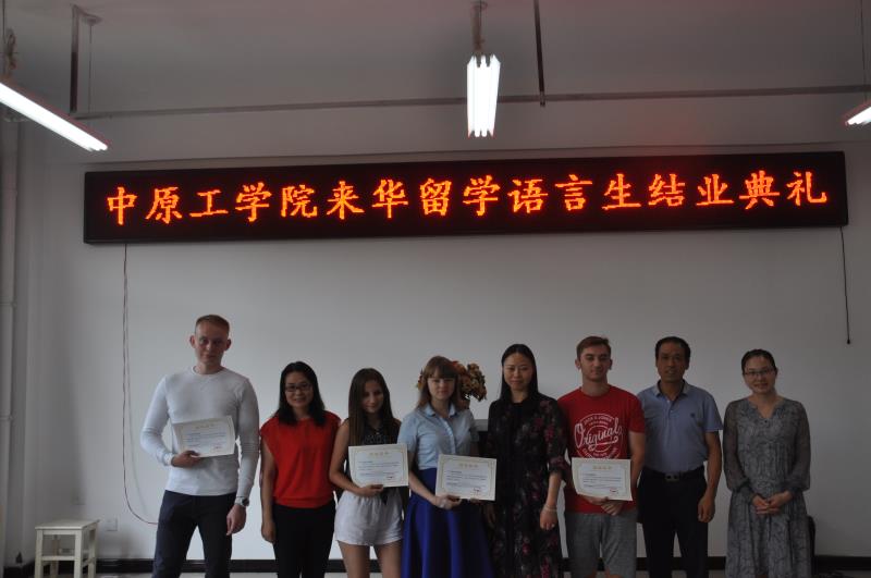 结业典礼中,来自俄罗斯的留学语言生谭雅代表全体留学生发言,谭雅表示非常高兴能有这次来中国学习的机会,在中原工学院一年的时间里,不仅学习了汉语,深入了解了中国文化,更结识了各国的同学,尤其是中国同学的友好和善以及授课教师的用心负责都给留学生留下了深刻的印象。一年时间很长,但也非常短暂,谭雅表示他们都期望还能有机会再来中国,再来郑州,再来中原工学院。外国语学院党总支书记姚晓鸣在给留学生的结业寄语中,首先祝贺留学生在我校顺利完成了为期一年的汉语修读,外国语学院的教师和学生助教一起见证了留学生汉语语言能力的增长。一年来留学生的学习是艰苦的,同时也是收获满满,也就是因为留学生的坚持,所以才有了今天大家脸上洋溢着的开心和自信。姚晓鸣书记表示,语言的学习需要持之以恒,希望留学生们能以此次在中原工学院的汉语学习为起点,在此后的路上继续关注中国、关注河南、关注中原工学院,非常欢迎留学生常回来看看。最后,对外合作与交流办公室主任谭恒与外国语学院党总支书记姚晓鸣共同为留学生代表颁发了结业证书。