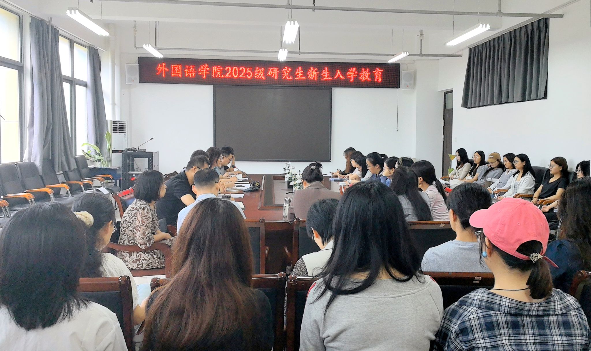 2025年9月8日下午,外国语学院在三号组团楼A402会议室召开外国语学院2025级研究生新生入学教育专题会议。学院领导班子成员、2025级研究生新生导师、研究生秘书、2025级翻译专业、国际中文教育专业、新闻与传播专业全体研究生全体新生参会,会议由副院长柴高洁主持。