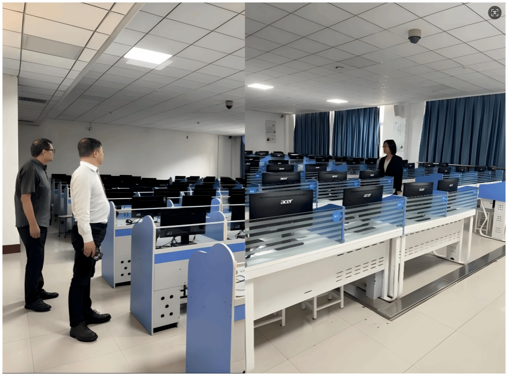 国庆、中秋双节临近,为保障假日期间校园安全稳定,防范实验室安全事故发生,9月30日下午,外国语学院院长姚晓鸣与副院长李慕杰、薛冬梅、李向民等组成检查组,对学院所属各个实验室进行全面安全检查。