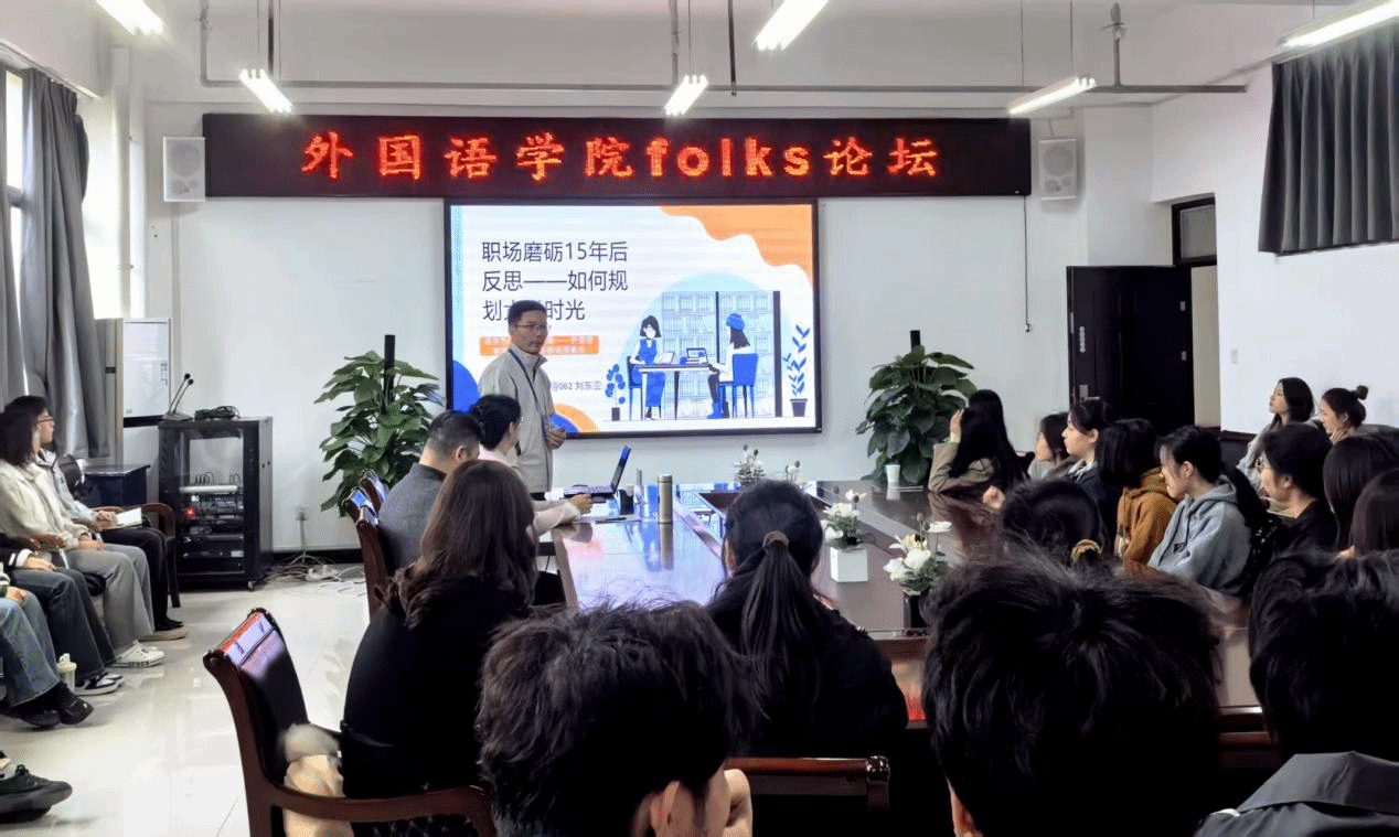 在此次分享中,刘东亚回顾了自己从“职场小白”到“外贸老鸟”的成长历程,强调“实战能力”在职场中的重要性,并建议同学们应尽早思考职业方向,选择具有发展潜力的行业深耕;随后,他指出,外贸、英语培训、跨境电商仍是当前英语专业毕业生就业的主流方向,并结合当前经济形势,提醒同学们关注行业动态,理性选择就业赛道;在谈及英语专业毕业生的核心竞争力时,他强调,在英语教育日益普及的今天,英语专业学生的优势在于跨文化沟通与信息处理能力。他特别指出口语表达能力的重要性,并鼓励同学们重视第二外语的学习,提升综合竞争力;此外,他又结合自身职场经验,对同学们大学四年提出具体规划建议;最后,刘东亚鼓励同学们紧跟时代步伐,培养谈判能力、分析能力、快速反应能力与逻辑思维能力,善用AI等新技术工具,为未来就业增添助力。