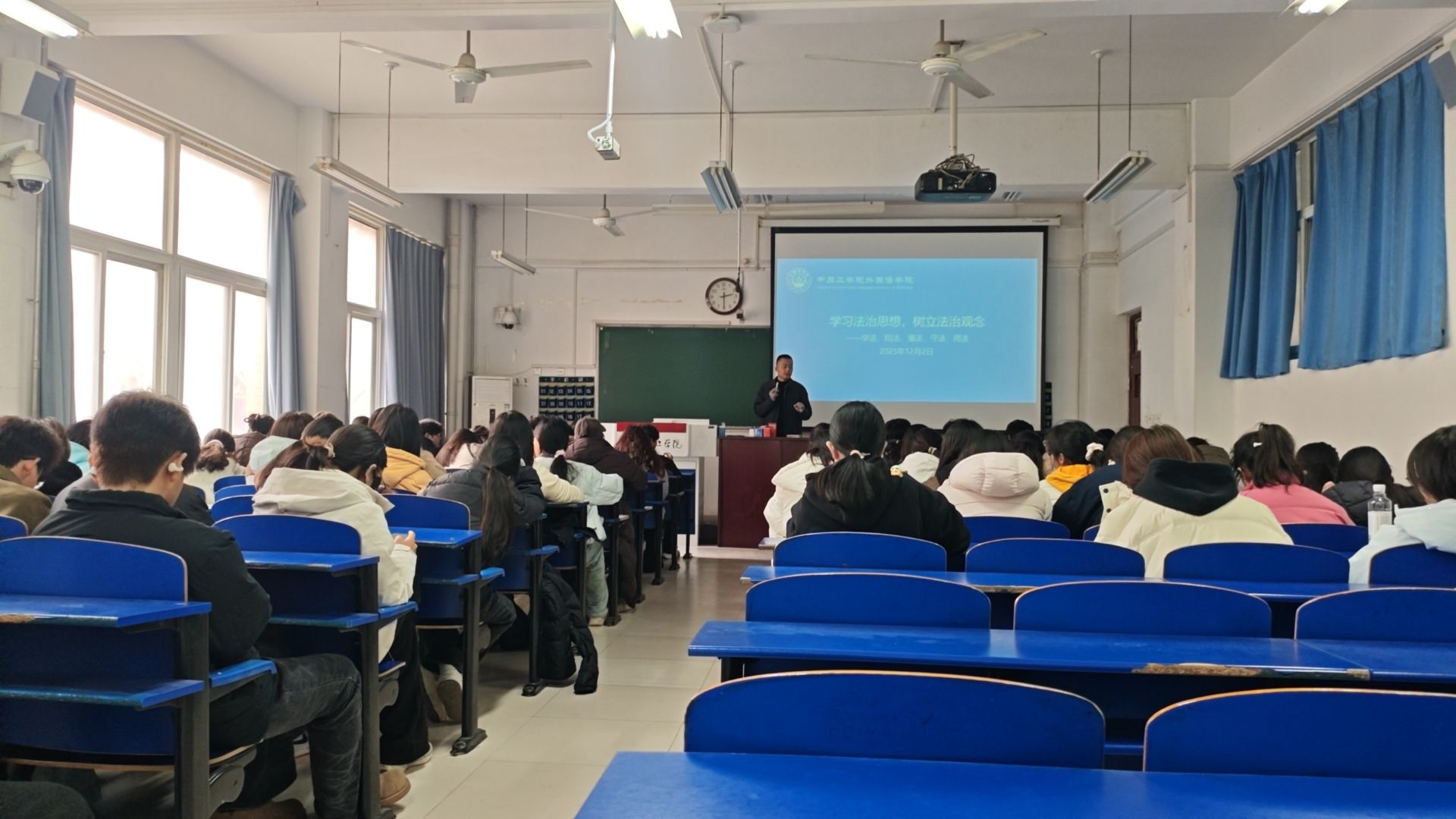为深入学习宣传贯彻习近平法治思想,弘扬宪法精神、维护宪法权威,12月2日,外国语学院在2组团221教室组织开展了宪法宣传周专题学习活动。学院党委副书记常潞炜、辅导员葛士阳、杨佳宁及学生代表近百人参加活动。